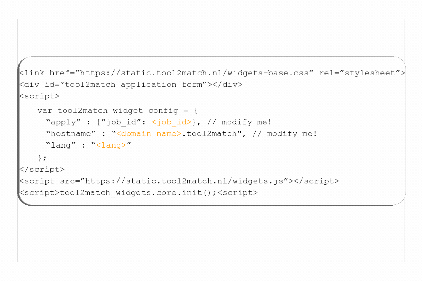 Wil je alleen het sollicitatieproces verbeteren zonder je hele website om te gooien? Dan kun je TOOL2MATCH koppelen via alleen het sollicitatieformulier. Kandidaten solliciteren direct via jouw site, en alle data komt automatisch binnen in TOOL2MATCH. Zo werk je efficiënter zonder grote aanpassingen.