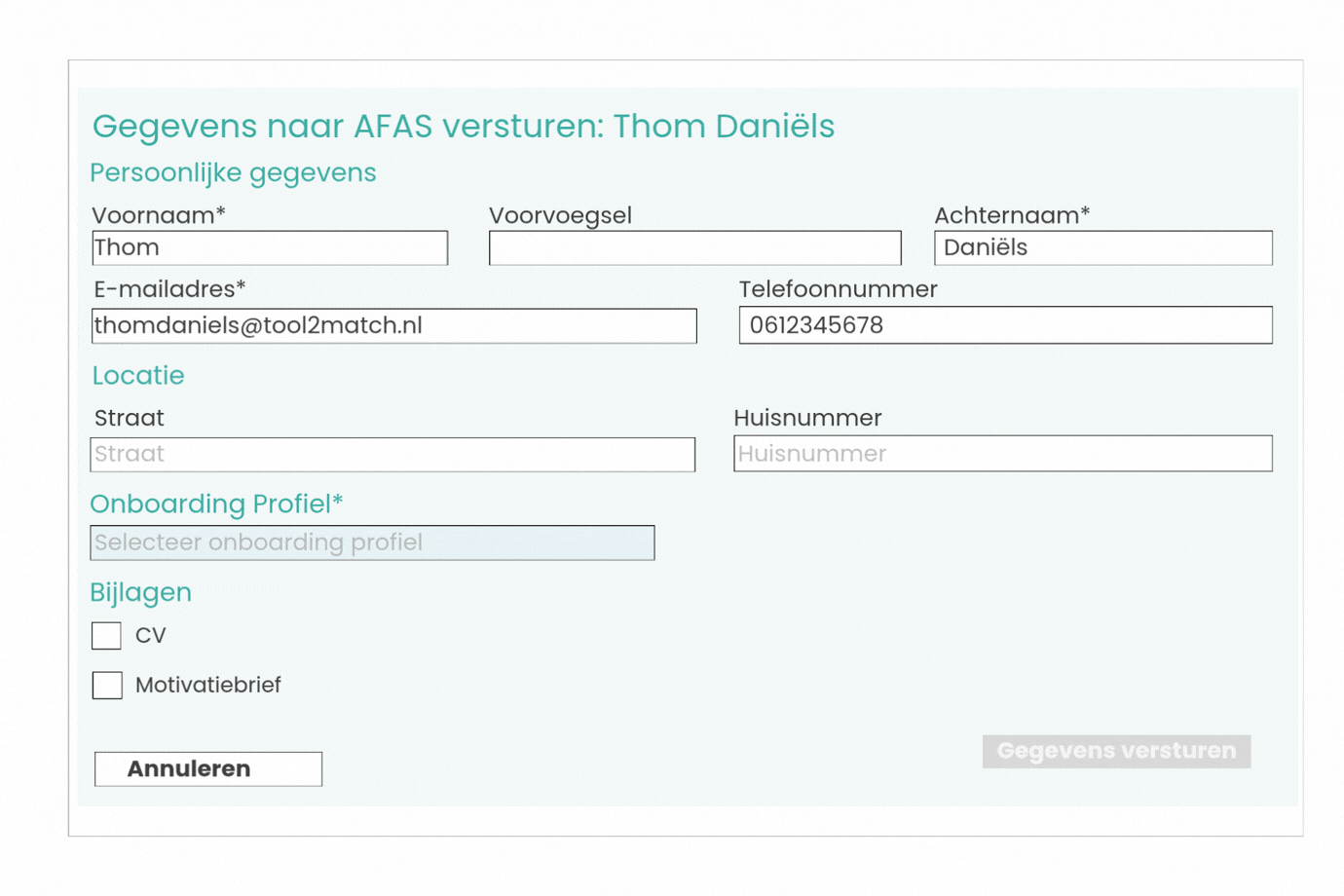 Met de AFAS-koppeling hoef je geen gegevens meer handmatig over te nemen. TOOL2MATCH maakt automatisch een nieuw profiel aan in AFAS, inclusief gekoppelde bestanden. Zo voorkom je fouten, bespaar je tijd en houd je grip op het proces. Alles is direct correct ingevoerd en klaar voor verdere verwerking binnen jouw HR-omgeving.
